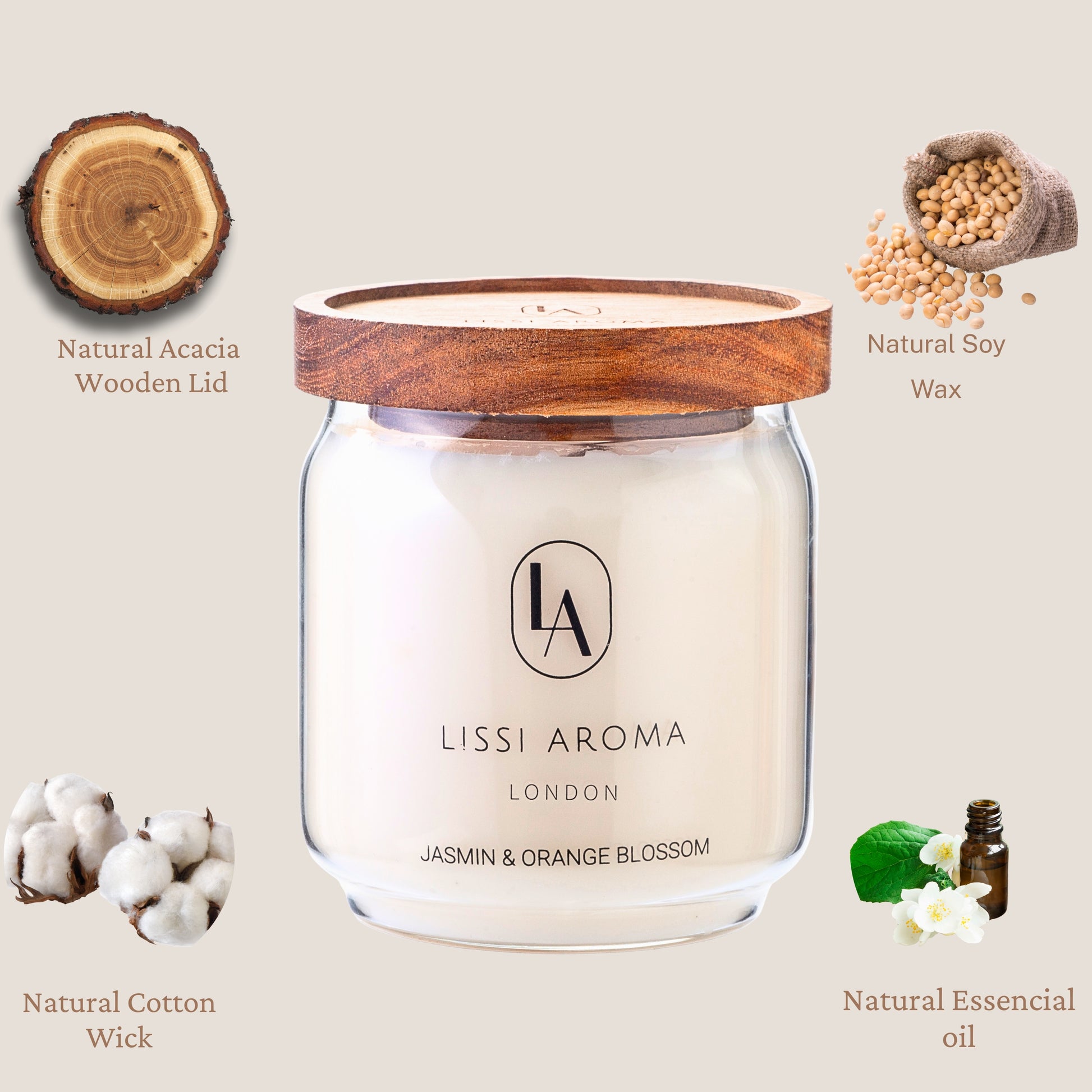 - NATURAL FRAGRANCE: Luxurious jasmin & orange blossom scented candle combines fresh forest notes for a refreshing and invigorating atmosphere
